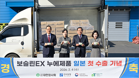 공지사항 & 보도자료 「푸드투데이」K-양잠의 쾌거…누에 분말 건기식 ‘보슬린EX’ 일본 첫 진출 2026.02.05 초도 6,700박스 수출 성과…양잠 산업 수출 모델 제시농진청 기술·잠사회 원료·한미양행 제조·aT 지원 ‘민관 협력’ 결실 [푸드투데이 = 황인선기자] 대한민국의 양잠 기술과 건강기능식품 제조 역량이 집약된 누에 분말 건강기능식품이 일본 기능성 식품 시장의 문을 열었다. 농촌진흥청의 원천 기술과 국산 누에 원료를 바탕으로 개발된 ‘보슬린EX’가 일본 […]